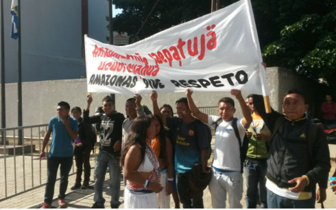 Con consignas como «Amazonas se respeta» manifestaron su desacuerdo con el Poder Judicial y mostraron apoyo a los diputados Julio Igarza, Nirma Guarulla y Romel Guzamana, además del Gobernador de Amazonas Liborio Guarulla, quien está siendo acusado por el Psuv de cometer delitos electorales.