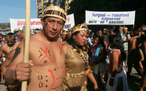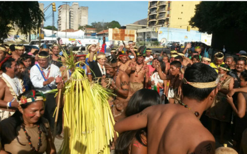 Un grupo de representantes de la etnia indígena Piaroa protestó en las inmediaciones del Palacio Federal Legislativo, en contra de la decisión del TSJ de pedir la desincorporación de los diputados electos por votación popular en el estado Amazonas, el pasado 6 de diciembre.