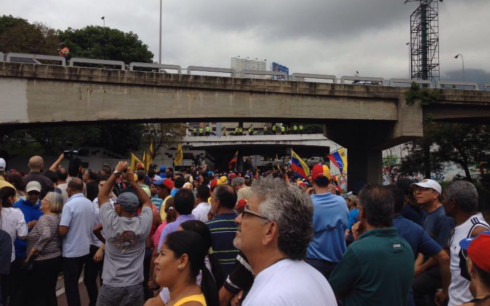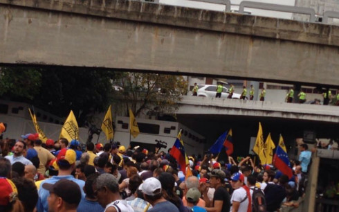 La marcha al CNE impulsada por la MUD ha sido detenida pues no les permiten el paso hacia la sede del máximo ente electoral.