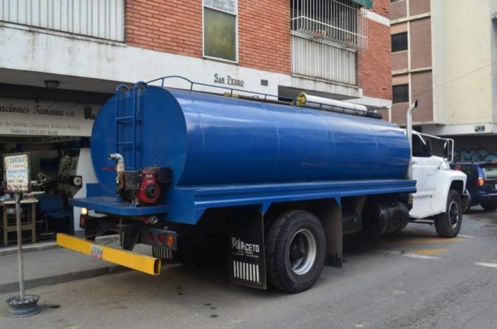 Por falta del servicio de agua los caraqueños se ven obligados a comprar camiones cisternas para abastecerse, pagan el vital liquido a un precio especulativo desde 6 millones hasta 20 millones de bolívares dependiendo de la topografía de las zonas.