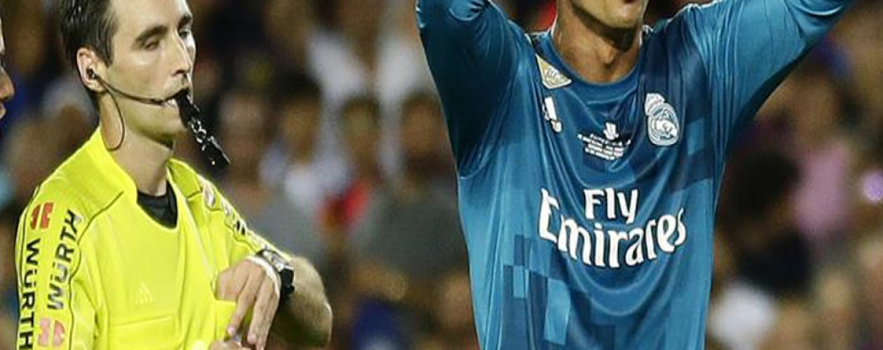 Ronaldo, que vio dos amarillas en la ida de la Supercopa disputada en el estadio Camp Nou, es sancionado con un partido por la expulsión y otros cuatro por el leve empujón que le dio en la espalda al árbitro Ricardo de Burgos Bengoechea. El delantero portugués entró en el campo en el minuto 58, en sustitución de Karim Benzema y vio la primera tarjeta amarilla por quitarse la camiseta tras marcar el 2-1 a favor de su equipo, en el minuto 79. Tres minutos después, vio la segunda, al considerar el árbitro que se tiró en el área, en una pugna con el francés Umtiti.
