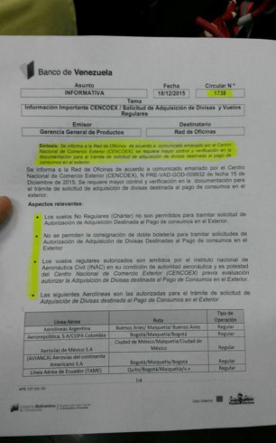 Comercio Exterior (Cencoex) y fue comunicada a la banca pública, quienes desde el año 2015 son los únicos que pueden tramitar el cupo viajero.