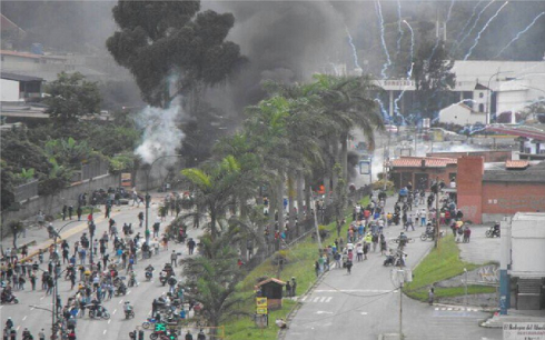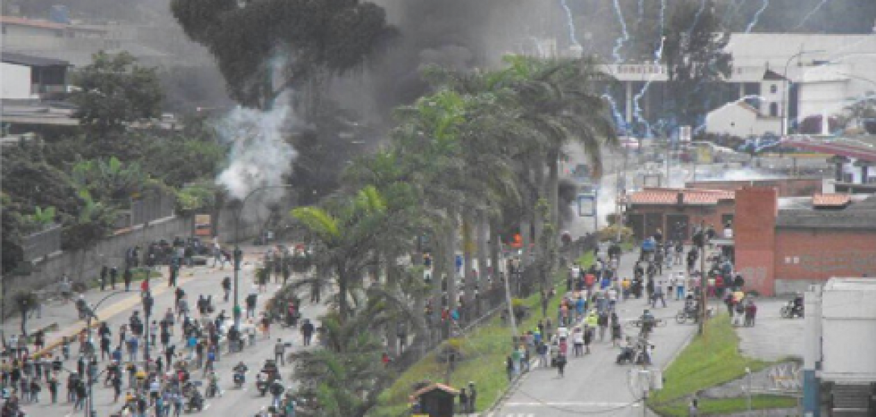 Los disturbios en San Antonio de Los Altos se vienen registrando desde la noche del martes, situación que ha dejado las calles de esa localidad llenas de barricadas y escombros. Hasta el momento se maneja la cifra de 25 personas heridas, entre ellas un menor de 15 años de edad, estudiante de cuarto año de bachillerato, quien supuestamente recibió un perdigonazo en la cabeza.