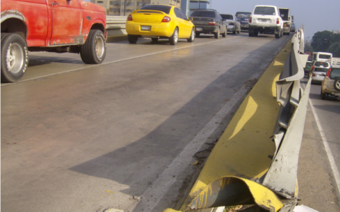 Las defensas del puente presentan golpes, producto de choques, que no han sido reacomodadas por los las autoridades gubernamentales.