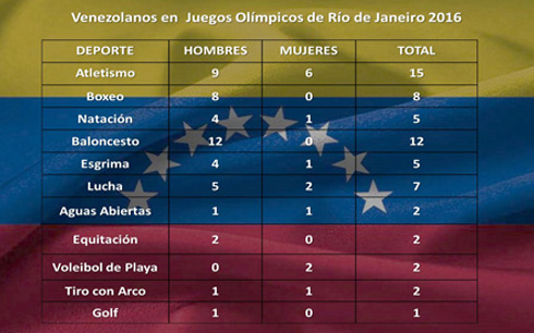 La cita ya está pautada para que del 5 al 21 de agosto se realicen las Olimpiadas Río 2016 y Venezuela dirá presente por decimoctava vez en la magna cita deportiva. La delegación venezolana para estas olimpiadas, es la segunda comisión olímpica más grande del país, después de los 109 atletas que asistieron a Beijing 2008, pues esta vez nuestro territorio cuenta con 87 atletas conformados por 61 hombres y 26 mujeres, que se disputarán en 20 categorías de los 28 deportes oficiales de las Olimpiadas Río 2016.