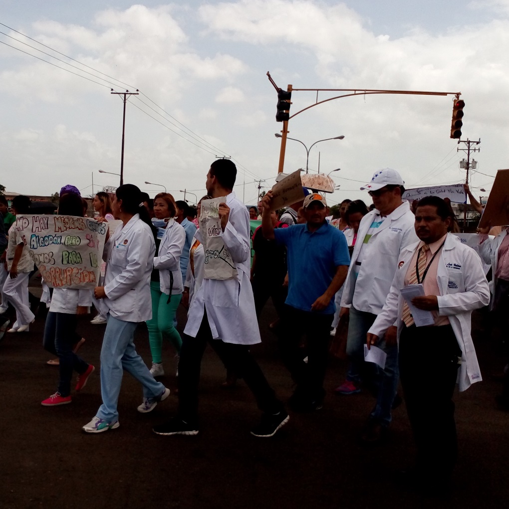 Trabajadores de los hospitales Uyapar en Puerto Ordaz y Dr. Raúl Leoni en San Félix se concentraron en el Cruce de la 45, desde donde marcharon nuevamente al hospital de Guaiparo.