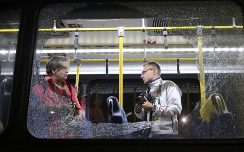 El autobús con periodistas acreditados para los Juegos Olímpicos fue apedreado, y estas alcanzaron el marco de metal de las ventanas. Tres de los pasajeros sufrieron heridas leves por el impacto de los cristales de las ventanas rotas.