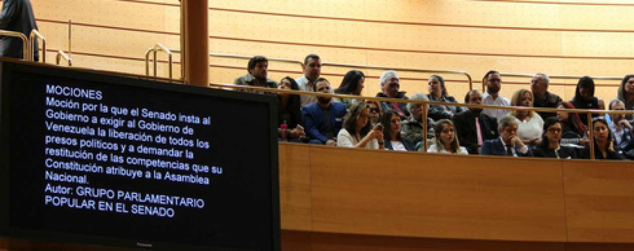 Hoy, en una moción del PP en la que reclamaba la libertad de los presos políticos en Venezuela, fue aprobada en el Pleno del Senado con la mayoría de los partidos políticos.