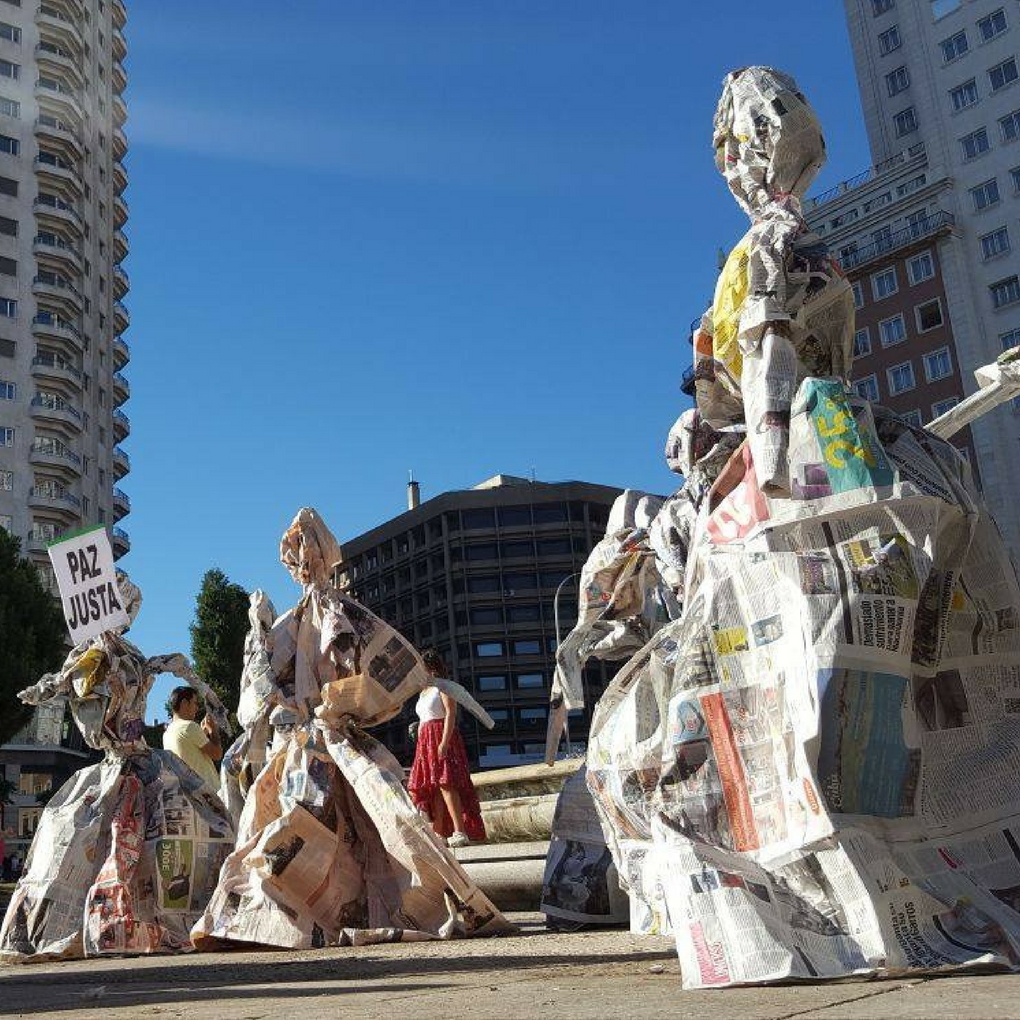 Un Mundo Sin Mordaza y Paperformances fueron los promotores, Gaby Araujo y José Antonio García los responsables. Pero no lo hicieron solos, decenas de voluntarios trabajaron sin descanso durante días para lograr las más de 50 figuras de papel periódico a tamaño real que representaron a los » guerreros de franela «. Dirigida al público español, la actividad sirvió para hacer más visible la situación en Venezuela.