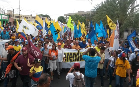 Por segunda vez dirigentes de la Mesa de la Unidad Democrática (MUD) y ciudadanos se activan en una marcha al CNE para exigir el cumplimiento de los lapsos para la activación del referendo revocatorio, dilatado a solicitud abierta del gobierno, cuyos voceros pasan por encima de lo establecido en el artículo 72 de la Constitución nacional, negando el derecho a los electores a solicitar el revocatorio al presidente de la República, Nicolás Maduro.