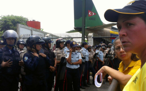 Un piquete femenino conformado por al menos 200 mujeres de la Policía de Aragua y Policía Nacional Bolivariana, impide el acceso de la marcha de la oposición en Aragua al Palacio de Justicia de la entidad.