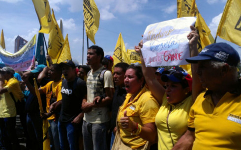 «El pueblo tiene hambre y quiere revocar» fue el grito de consigna de los manifestantes en la marcha de la oposición, quienes partieron desde la avenida 19 de Abril en Maracay pero en el inicio de la avenida Las Delicias, a la altura del Museo Aeronáutico, fue interrumpido el paso.
