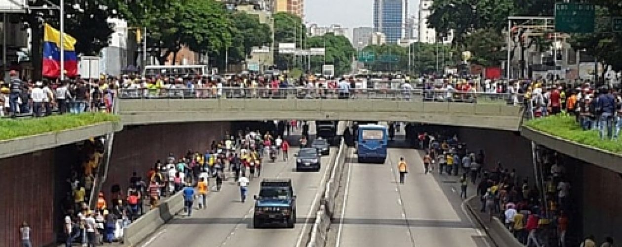 La marcha en Caracas convocada por la Mesa de la Unidad Democrática (MUD) tendría como lugar de concentración la Plaza Venezuela, pero por presencia de grupos oficialistas y policías, fue reubicada a la altura de la Torre La Previsora.
