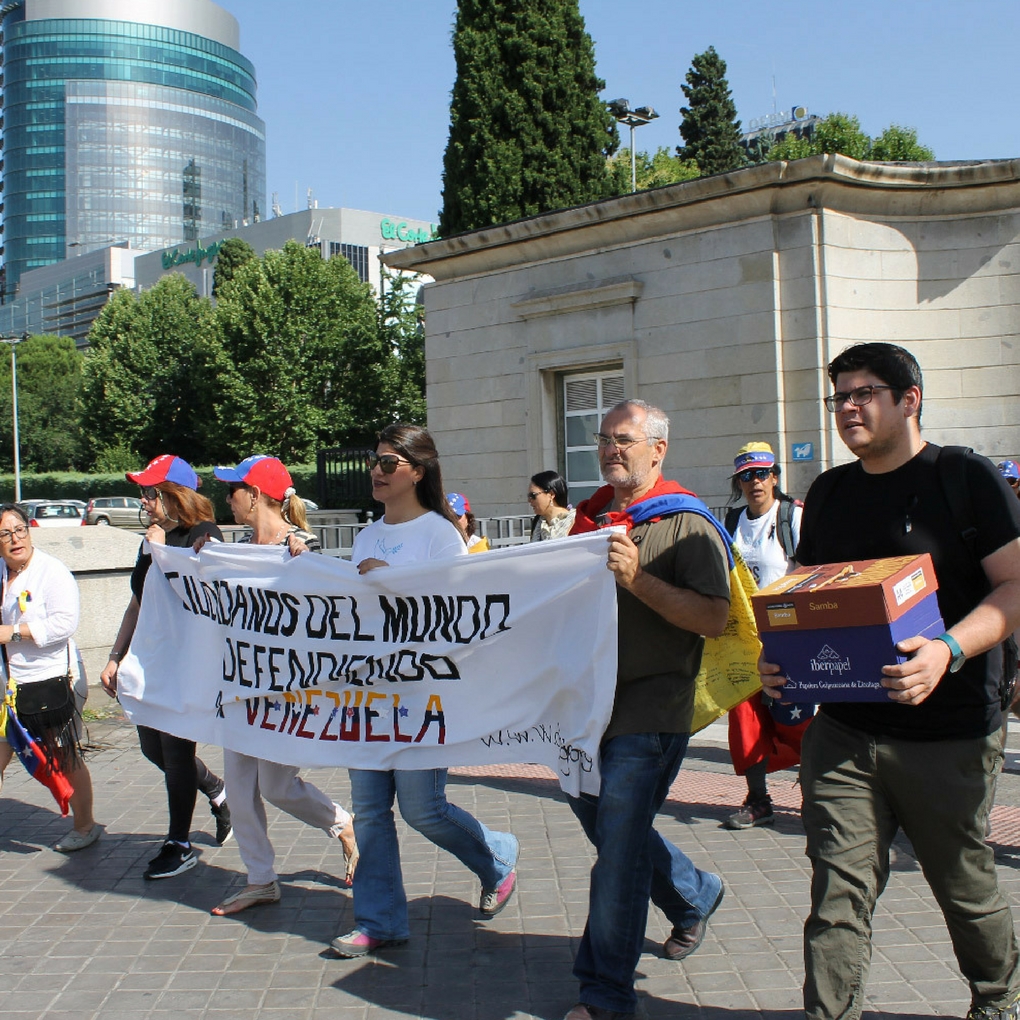 Patricia Carrera logró llegar a la sede madrileña del Parlamento Europeo, la mañana del viernes 16 de junio, después de peregrinar 381 kilómetros de León a Madrid durante 17 días. Traía consigo las firmas recogidas en la campaña Ciudadanos del mundo defendiendo a Venezuela, en total 13.226.