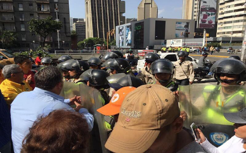 Según los reportes de usuarios de la red social Twitter, efectivos de la Policía Nacional Bolivariana no permitieron a los activistas de la oposición reunirse detrás del Centro Comercial Los Cedros, en la avenida Libertador, desde donde iban a caminar hacia Plaza Venezuela, lugar de donde partirá la marcha opositora. Según la información suministrada por los tuiteros en el sitio hay miembros del partido Voluntad Popular, el cual es liderado por Leopoldo López.