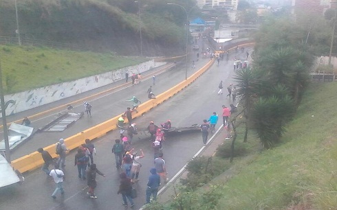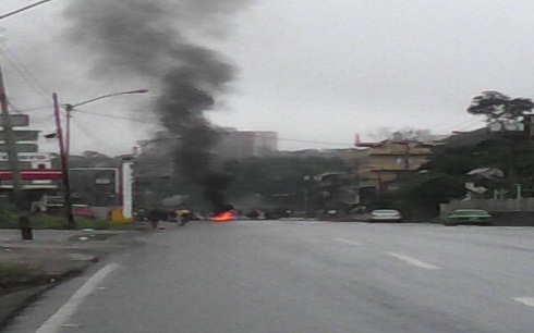 Al parecer un grupo de personas trancó la vía con troncos de árboles y cauchos, para exigir que se realicen elecciones generales en el país y para rechazar la gestión del Gobierno chavista.