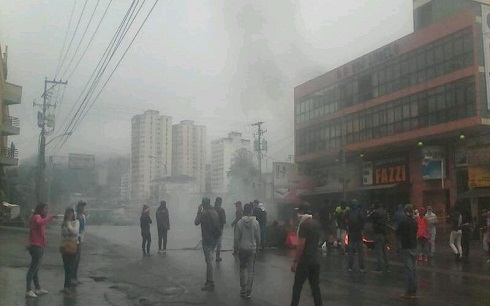 En el sitio reportan alrededor de 60 efectivos de la Guardia Nacional Bolivariana y de la policía municipal. Además, utilizaban bombas lacrimógenas para dispersar a los manifestantes.
