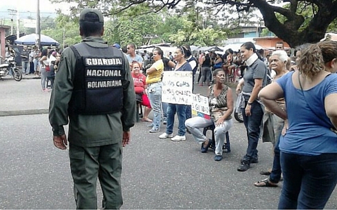 Funcionarios de la Guardia Nacional Bolivariana (GNB) se encuentran presente en el lugar con equipos antimotines e intentan dispersar a los manifestantes.
