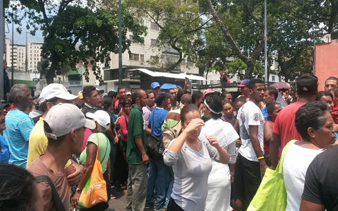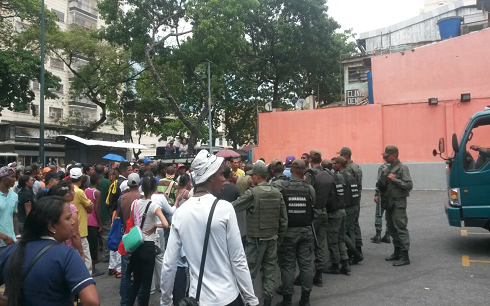 Las colas de ciudadanos a las afueras de los supermercados en Caracas para adquirir alimentos han generado en ocasiones situaciones violentas que, en algunos casos, terminan en la llegada de funcionarios de la Guardia Nacional Bolivariana (GNB) para intentar ejercer control. Ante esto, algunos establecimientos intentan tomar previsiones cerrando sus puertas.