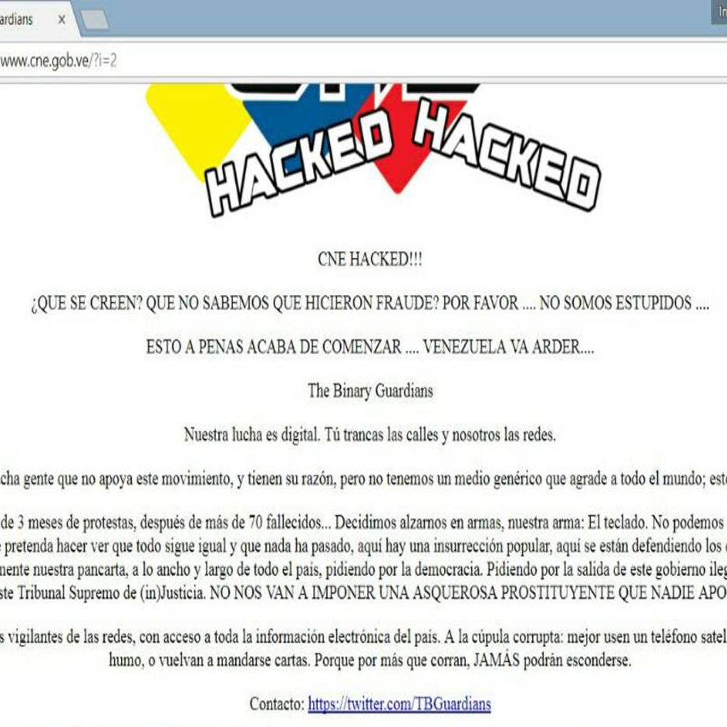 Un grupo llamado “The Binary Guardians” (Tbguardians) hackeó la página del Consejo Nacional Electoral.