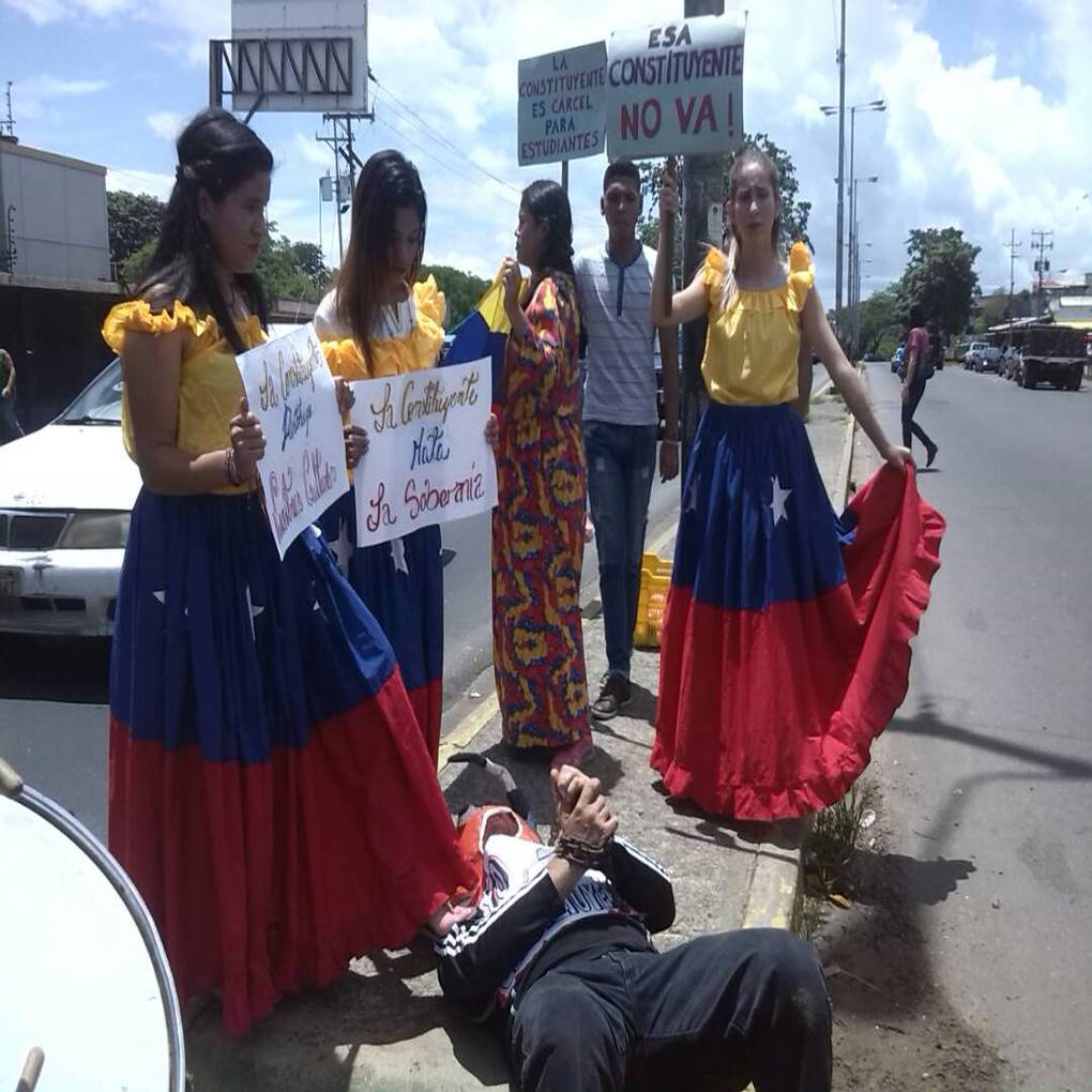 A tres días de realizarse el proceso electoral para escoger a los constituyentistas de la Asamblea Nacional Constituyente, miembros del Movimiento Ciudadanos, conformado por parte de la sociedad civil, jóvenes estudiantes, profesionales, entre otros, realizaron este jueves diferentes presentaciones de su teatro de calle, tanto en avenidas como en centros comerciales de Puerto Ordaz, como forma de protesta en contra de esta convocatoria, pautada para este domingo 30 de julio.