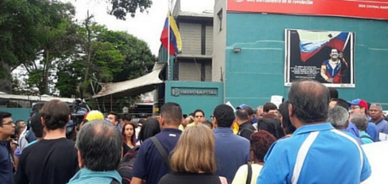 Caraqueños protestaron con tobos vacíos a las afueras de la oficina principal de Hidrocapital para exigir el servicio de distribución de agua. Madres, abuelos, jóvenes y demás afectados se trasladaron a Maripérez, en el centro de Caracas para reclamar las constantes fallas y el excesivo racionamiento al que son sometidos.