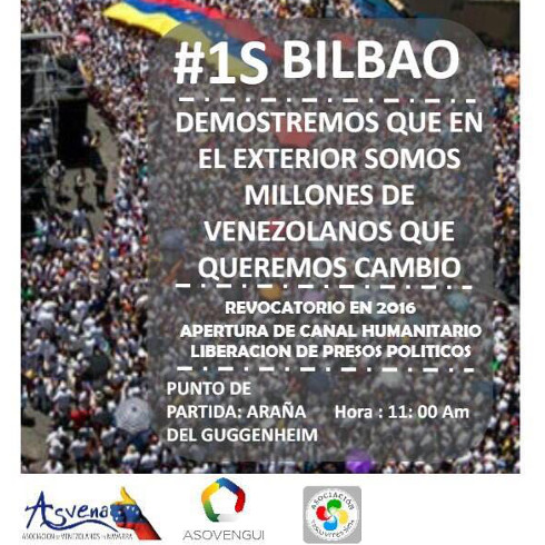 Entre las actividades que se realizarán en España el 1 de septiembre está la concentración desde las 12 del mediodía a las 2:00 pm en la Puerta del Sol, Plaza de Callao, Parlamento Europeo y en las sedes de la embajada y el consulado venezolano en la capital española. Ese mismo día a las 11:00 am los venezolanos residentes en Bilbao, se congregarán en la Araña del Museo Guggenheim; mientras que a las 7:00 pm será el turno de los venezolanos en Valencia, España, quienes se reunirán en la Plaza del Ayuntamiento.