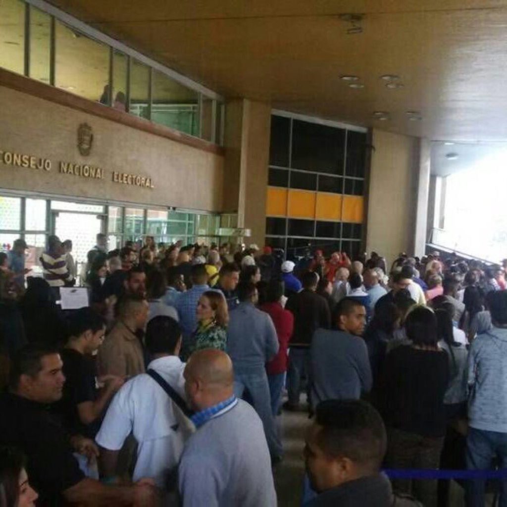 Las autoridades del CNE no se pronunciaron al respecto y los trabajadores paralizaron la protesta en horas de la tarde.
