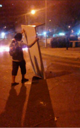 A un terreno adyacente al Hotel Eurobuilding lograron entrar los opositores, de donde sacaron un portón y una ambulancia vieja para usarlos como escudo, así como también protegerse tras las barricadas hechas con cauchos, escombros y piedras.
