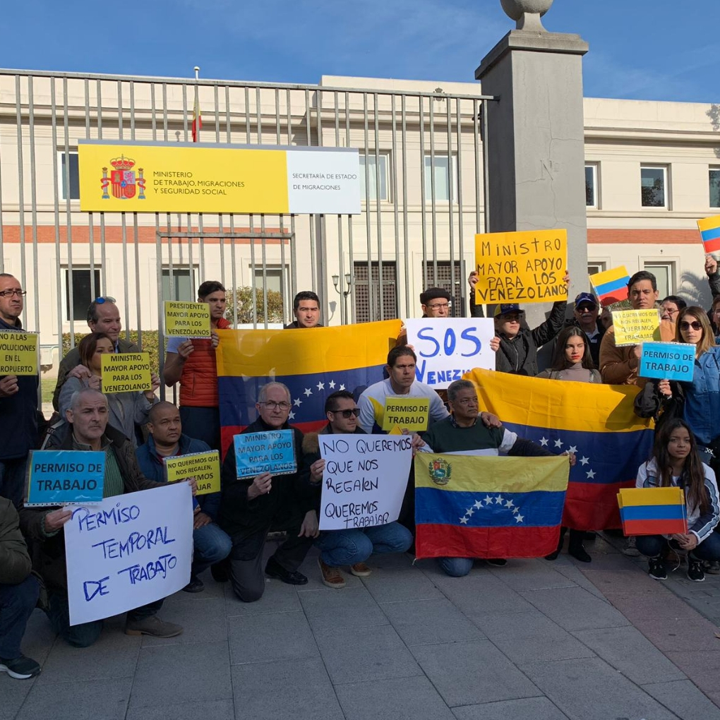 Un nutrido grupo de venezolanos en Madrid se manifestó, este 5 de diciembre, frente a la sede del Ministerio de Trabajo, Migraciones y Seguridad Social para pedir la regularización del procedimiento de solicitud de citas de extranjería, que se dote de mayor capacidad técnica y humana a las distintas sedes de la Delegación de Gobierno en materia de extranjería y que cesen las devoluciones en caliente de ciudadanos venezolanos. En un documento consignado ante registro, las asociaciones y partidos políticos convocantes, piden celeridad en la respuesta.